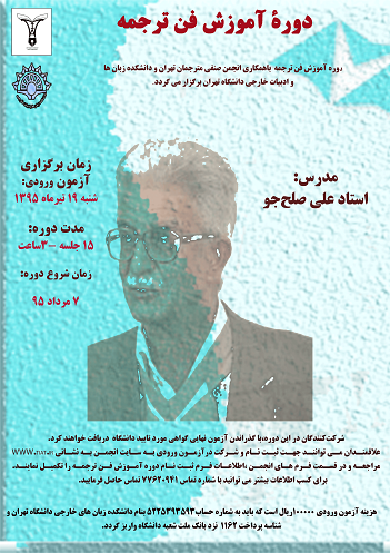 این دوره آموزشی در راستای تحقق اهداف آموزشی انجمن صنفی مترجمان شهر تهران و با تدریس استاد علی صلح جو برگزار می شود.